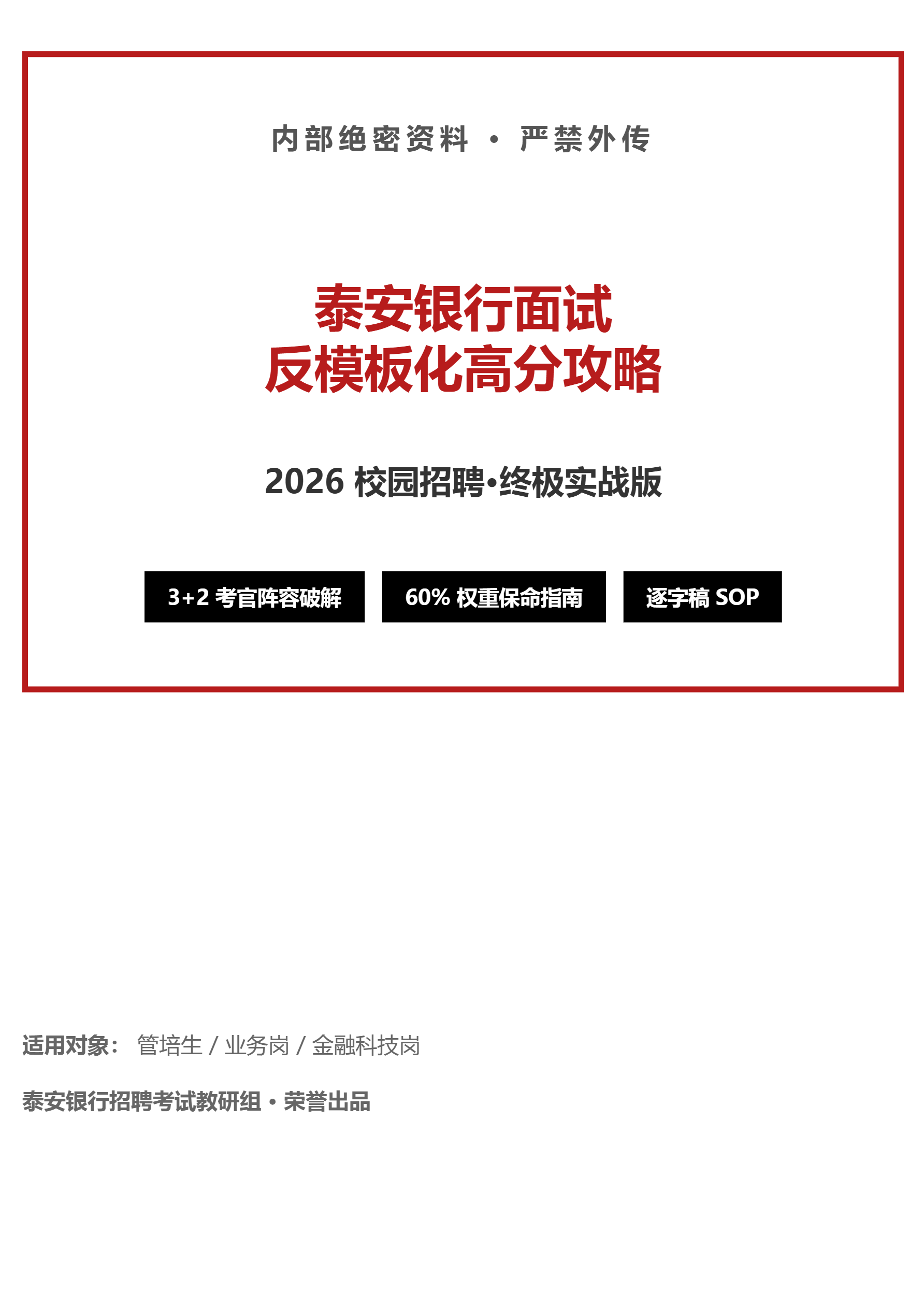 📝 备考建议: 泰安银行面试权重高达60%,真的是“一战定生死”。 为了帮大家避开模板坑,我把针对“3+2阵容”的全套逐字稿(含自我介绍、压力面话术、反问环节)都整理好了。